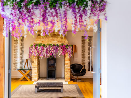 An old farm cottage converted to a beautiful modern farmhouse. The rear terrace overlooks open fields where you can hope to see a beautiful sunset from the hot tub. The side terrace overlooks the mature private main garden with large lawn area. There is a cosy seating room outside to enjoy a private chat. Internally, the house has a large open plan main kitchen diner with bespoke handmade green oak large dining table. Separate lounge with windows to three elevations overlooks garden and fields. There are six bedrooms which can sleep up to 18 guests. Two bathrooms and an ensuite shared by two bedrooms.